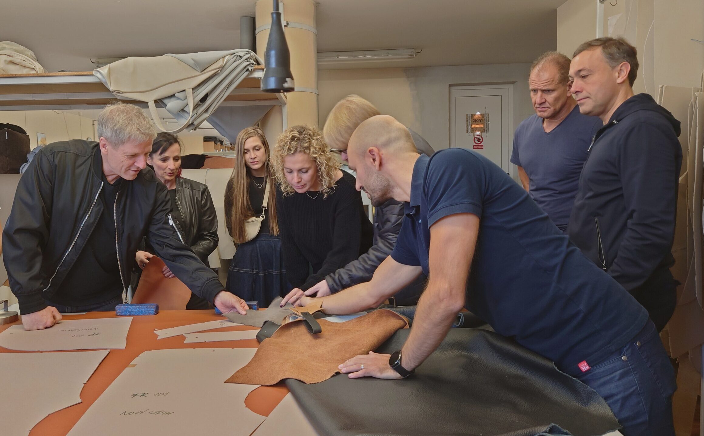 Následující den ráno nám pak tým Polstrinu umožnil nahlédnout do zcela jiné „kuchyně“ – té nábytkářské a čalounické v provozních halách firmy. Zjistili jsme třeba, jaká specifika mají kůže určené pro potahování nábytku, naživo jsme sledovali plotr, který vysekává střihy z potahových látek a prošli jsme si celou cestu čalouněného nábytku od výroby dřevěné kostry až po tvarování pěny a potahování.