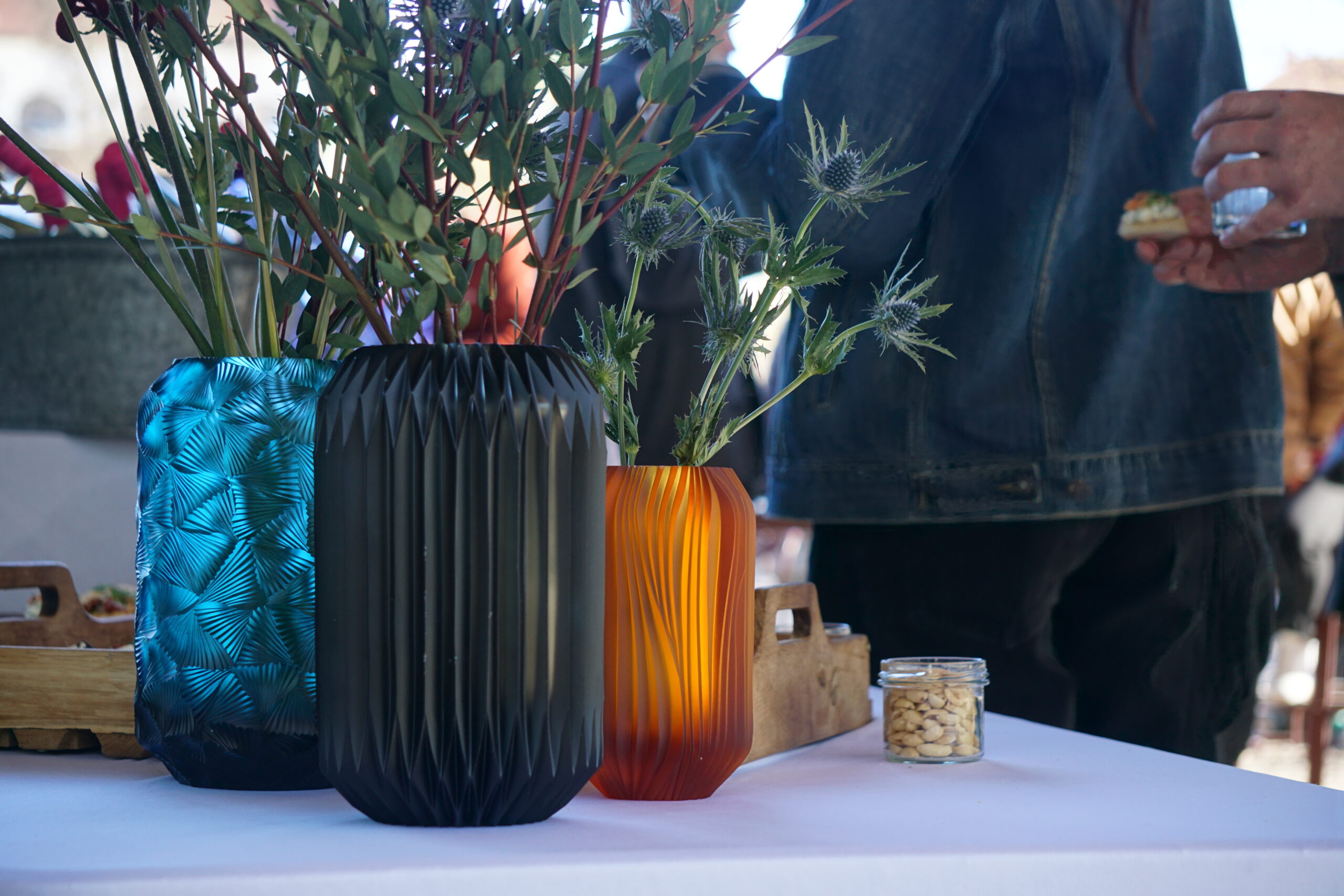 Na vernisáž dorazilo přes 50 hostů. Nádherné jarní počasí a vybrané produkty našich členů vytvořily na terase PARQ espresso baru výjimečnou atmosféru pro uvolněnou debatu. „Obývák“ pod širým nebem nabídl jedinečnou možnost si to nejlepší z českého designu zblízka prohlédnout, „osahat“ materiály i detaily zpracování a mluvit přímo s lidmi, kteří za vznikem produktů stojí.